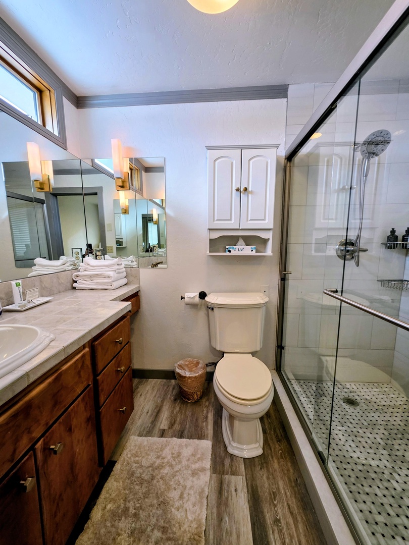 Located just steps from the ski area, this updated 3-bedroom, 2 bath condo is the perfect home base for your Crested Butte adventures. Unit 34 is unique because it is on the ground level which provides access without needing to walk through the lobby or use an elevator. The open living area with floor to ceiling windows and a gas fireplace is a great spot to relax and enjoy time together after a day on the slopes. Plenty of room for everyone at the large dining table that seats 8 plus barstools for overflow. The renovated kitchen has Quartz countertops and high-end appliances including a 6 burner Thermador with oversized oven for the gourmet in your group. There are three bedrooms - a main bedroom with an en-suite bathroom and two other bedrooms that share a bathroom. The condo also has in-unit laundry and lots of storage including a large, lockable owners’ closet. This unit comes with 2 covered parking spaces, 2 ski lockers, indoor and outdoor hot tubs, steam room, sauna, tennis courts and the on-site restaurant, Ironhorse Tap.