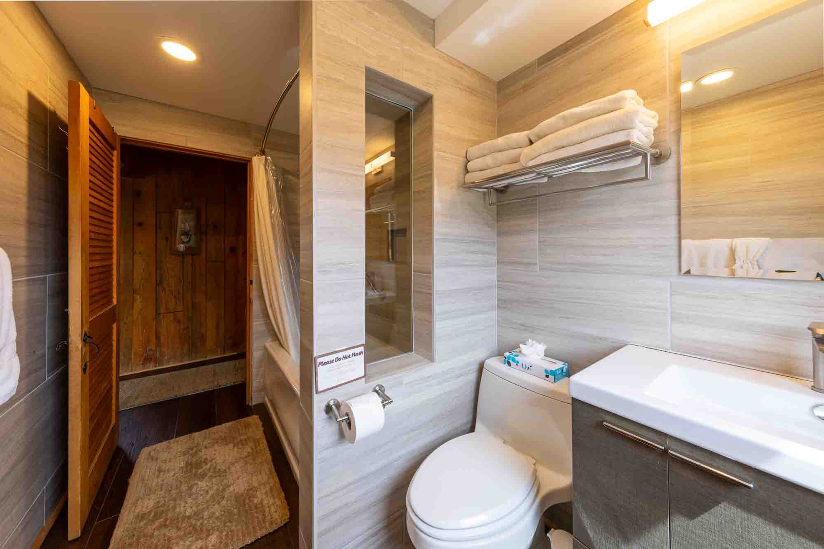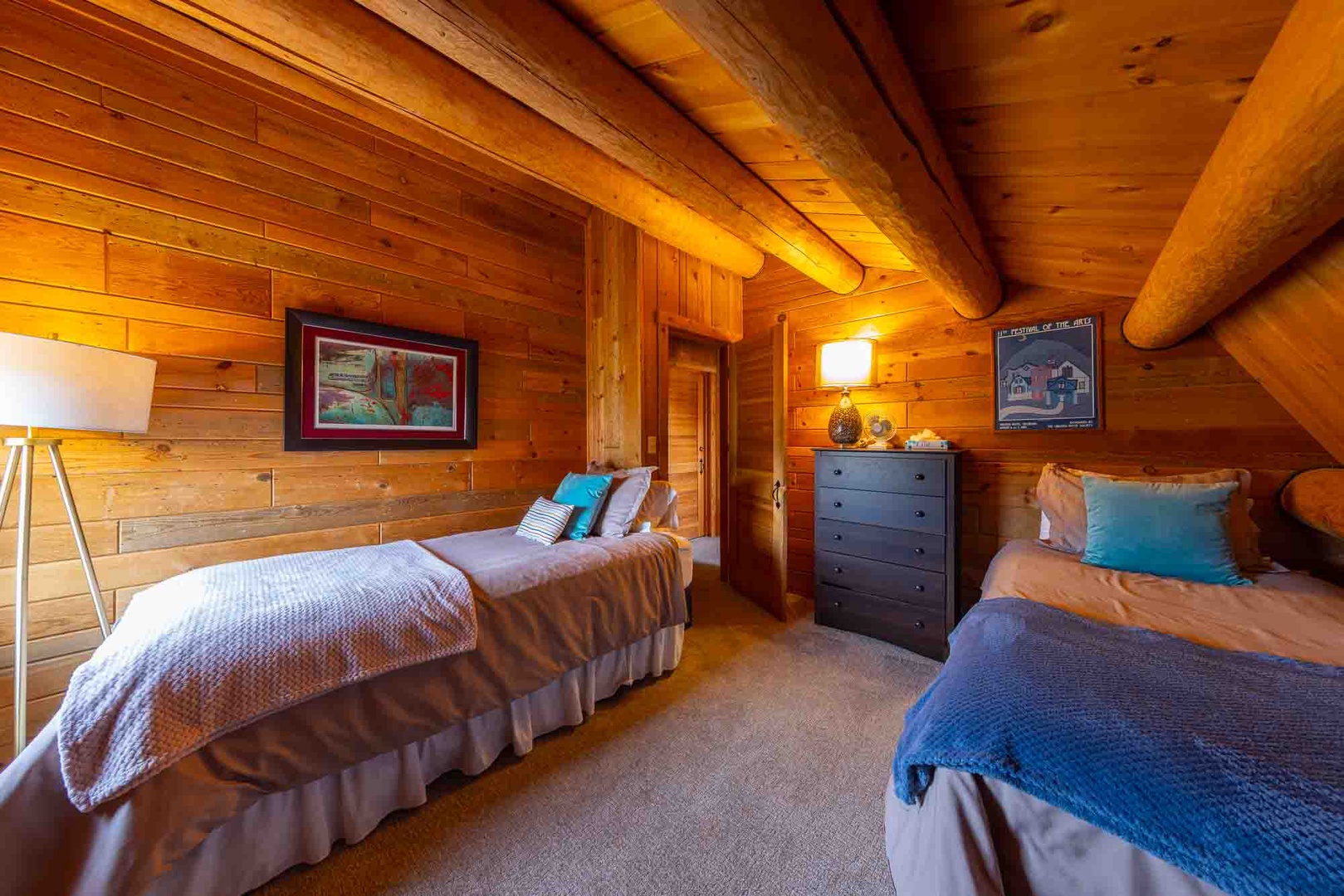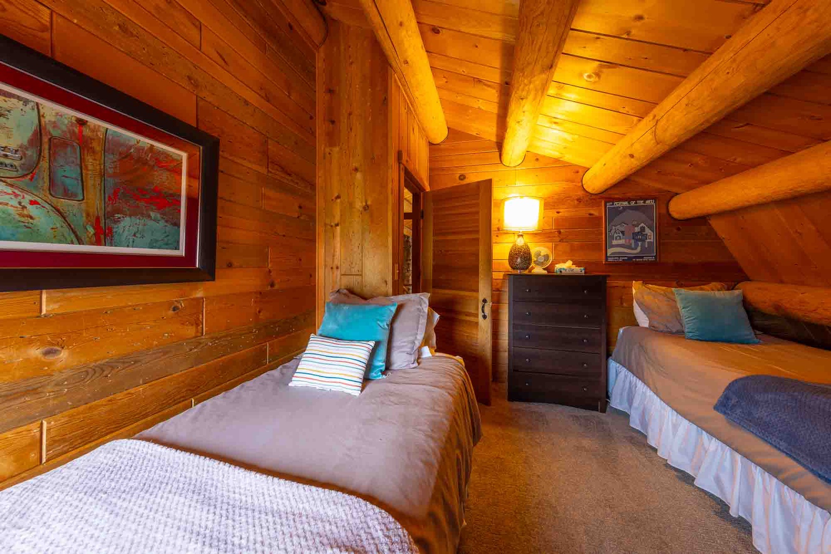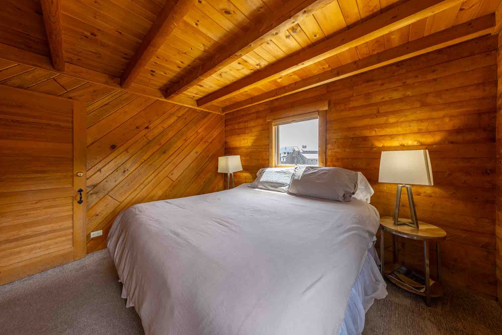 The downstairs level features two bedrooms (one with a (1) King-sized bed and one (1) with a Queen-sized bed) and one bathroom; and the upstairs level features two bedrooms (one with a (1) Queen-sized bed and the other with two (2) Twin beds) and one bathroom. This configuration can work well for extended family, multiple couples or a group of friends to share, as well.