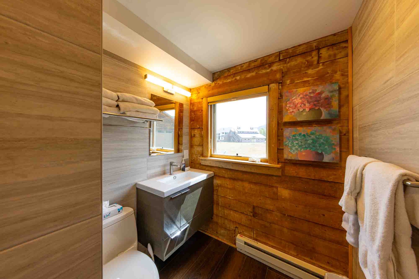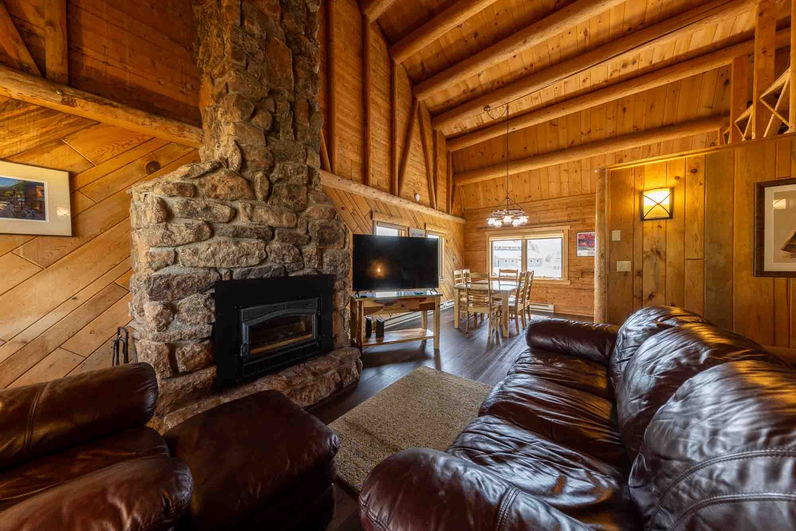 During the summer, this home provides the ideal spot for early-morning wildlife viewing (picture: hummingbirds, geese, deer and elk!), afternoons spent reading or just relaxing in a rocker on the front porch, quality time with loved ones drinking/dining al fresco on the back porch, and late-night S'mores cooked over the backyard fire pit. During the winter, after a long day on the slopes, you can park yourself in front of the 55" Ultra High-Definition 4K Smart TV in the family room and stay nice and toasty, courtesy of the new wood stove (2017).