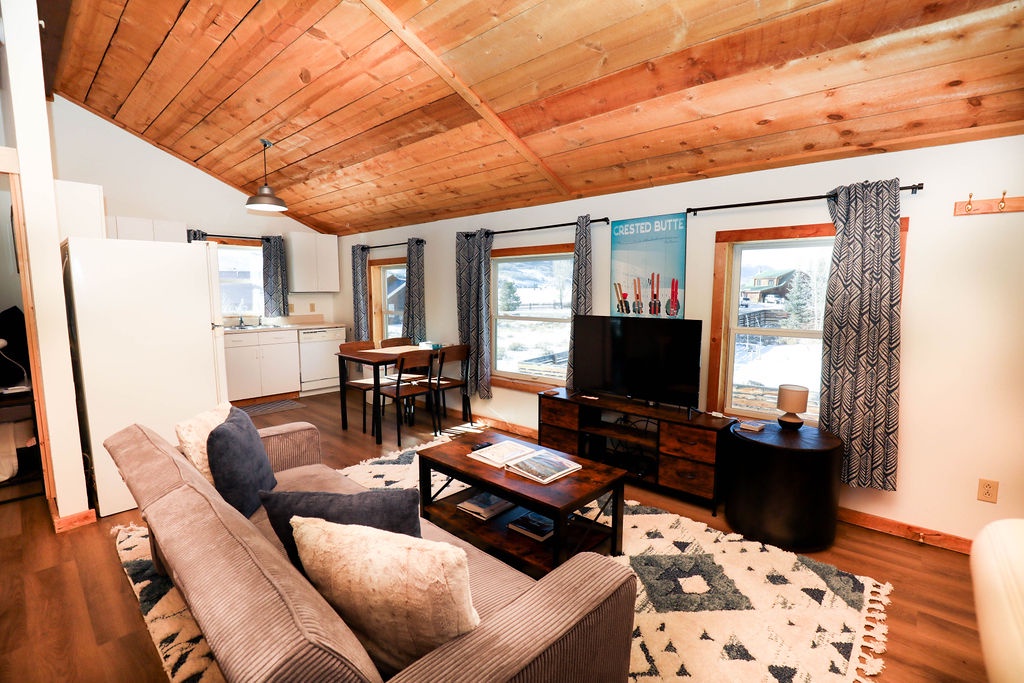 The walk to the free bus is just 5 minutes away. You always have access to beautiful Cement Creek right outside your doorstep!