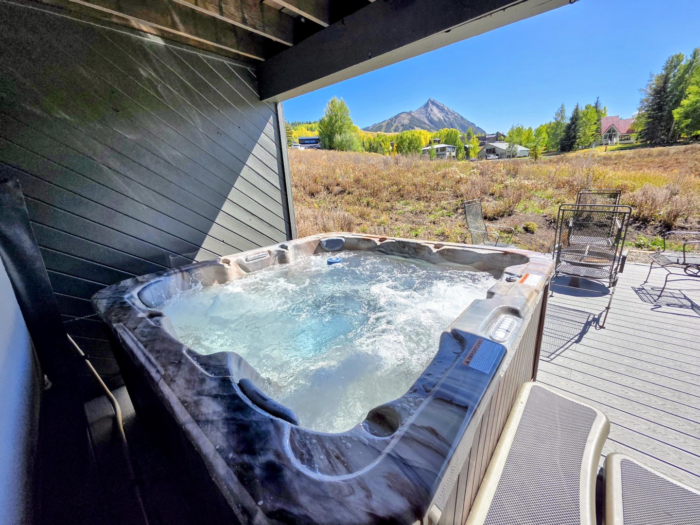 Hot tub with incredible views! This affordable and comfortable 3 bedroom, 4 bathroom home has a large open living/dining area. The home also has a second den area in the basement including a Tv and a bathroom with a shower. Offered at a lower price than other homes in the area, it is an incredible value!! Enjoy views of Mt. Crested Butte from the outdoor deck. The house has a large driveway with room for one car in the garage. In the winter only, the free shuttle will pick you up right across the street from the driveway for skiing or a trip to the town of Crested Butte. In the summer the closest shuttle stop is a half mile down the hill.